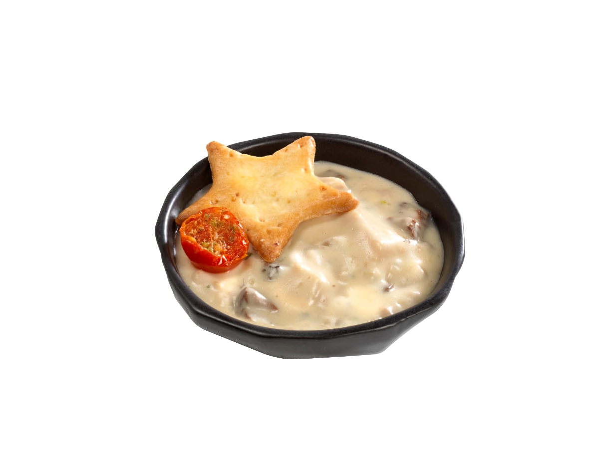 Farine de blé, beurre, saumon cuit, crème, champignons de Paris, saumon fumé, échalotes, dorure, vin blanc, jus de citron jaune, ciboulette, estragon